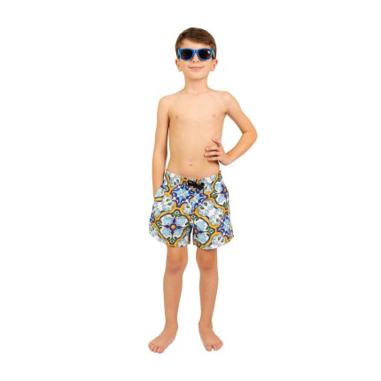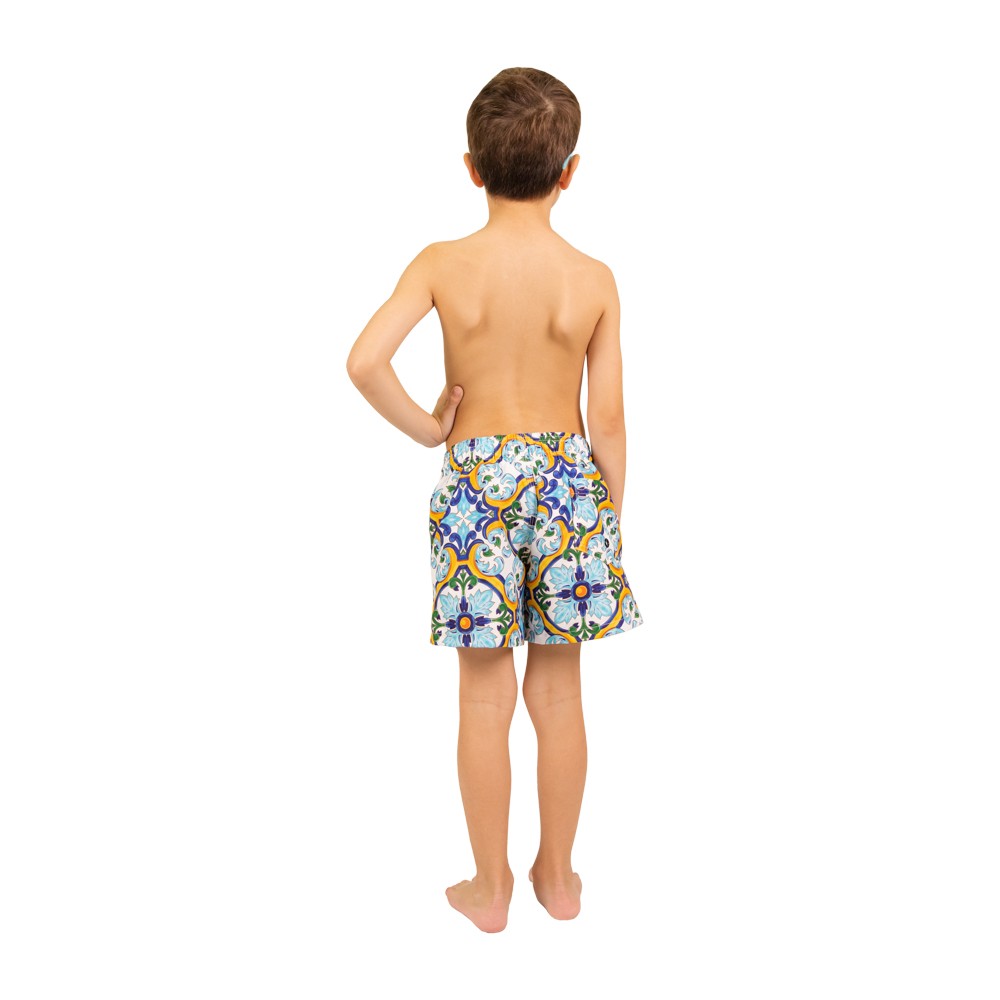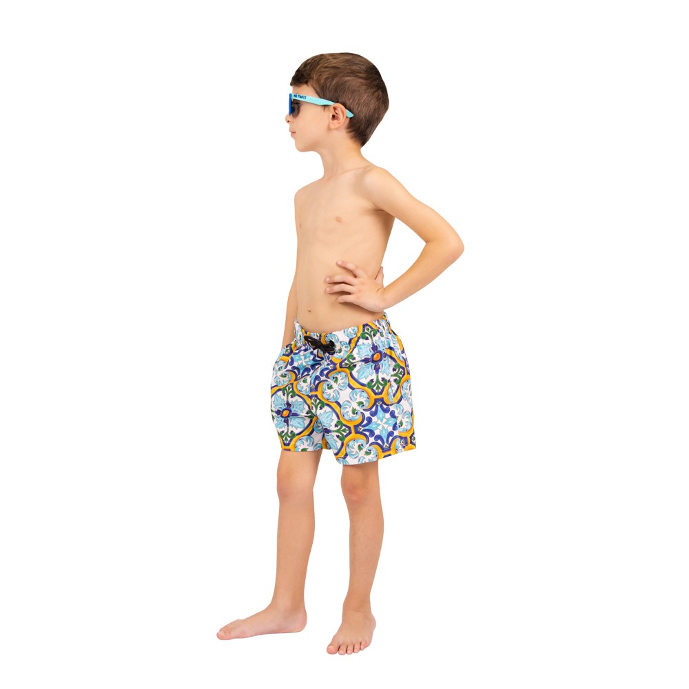 Παιδικό μαγιό με Positano μοτίβο από την WAVES. Άνετο με λάστιχο στην μέση και κορδόνι για μια τέλεια εφαρμογή στο σώμα. Έχει 2 εσωτερικές τσέπες και μία εξωτερική στην πίσω πλευρά καθώς είναι επενδυμένο με εσωτερικό δίχτυ.