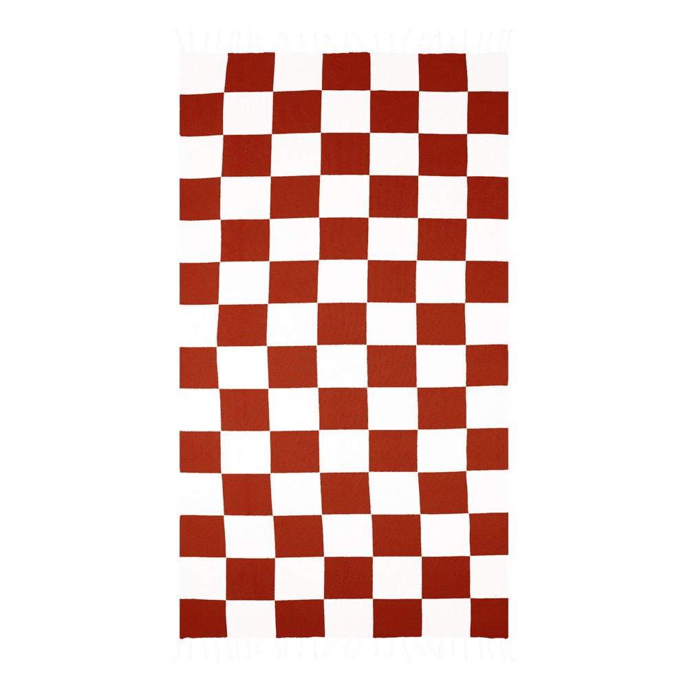 Βαμβακερή Πετσέτα, με μοτίβο σκακιέρα και κρόσσια στο τελείωμα. Είναι κατασκευασμένη από βαμβακερά νήματα, γεγονός που την καθιστά απαλή, ανθεκτική και απορροφητική. Πλένεται στους 30°C, χωρίς χλώριο ή λευκαντικά. Σιδέρωμα σε μέτρια θερμοκρασία. καθάρισμα. Είναι υποαλλεργική, απαλή, απορροφητική και ανθεκτική στη χρήση.