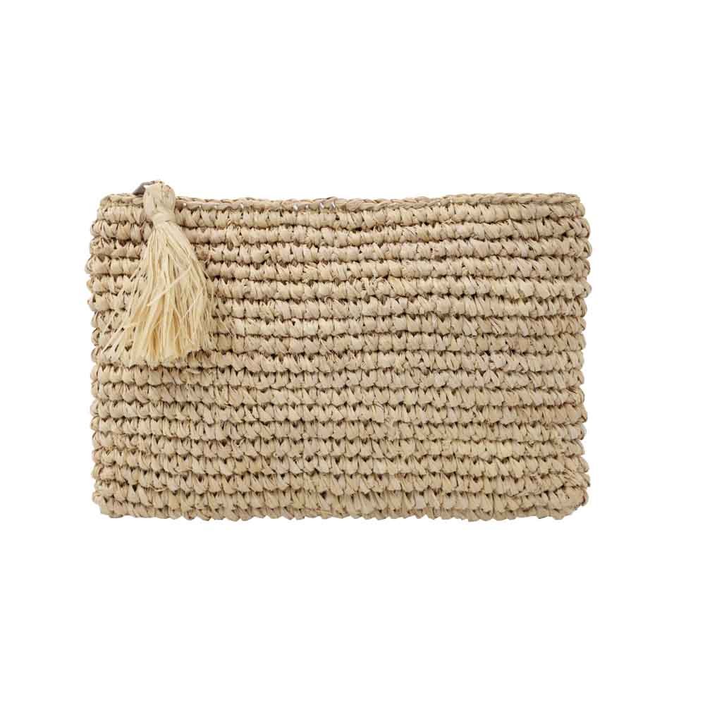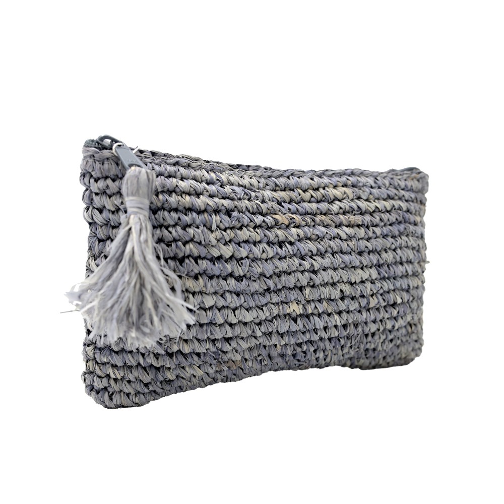 Τσαντάκι με χειροποίητη πλέξη από Raffia με εσωτερική επένδυση και φερμουάρ
