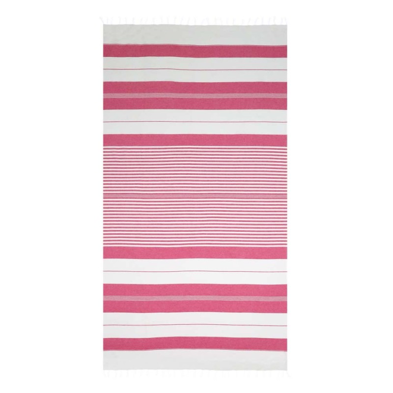 Pestemal πετσέτα με ρίγες και κρόσσι στο τελείωμα από την Aquablue. Υπέροχη πρόταση για τις καλοκαιρινές σας εμφανίσεις. Είναι αρκετά απορροφητικές, ελαφριές και στεγνώνουν γρήγορα. Διατίθεται σε διάσταση 180x90cm και βάρος 250gr/m2.
