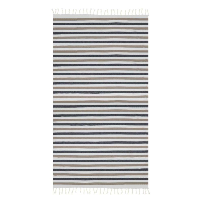 Pestemal πετσέτα με ρίγες και κρόσσι στο τελείωμα από την Aquablue. Υπέροχη πρόταση για τις καλοκαιρινές σας εμφανίσεις. Είναι αρκετά απορροφητικές, ελαφριές και στεγνώνουν γρήγορα. Διατίθεται σε διάσταση 180x90cm και βάρος 350gr/m2.
