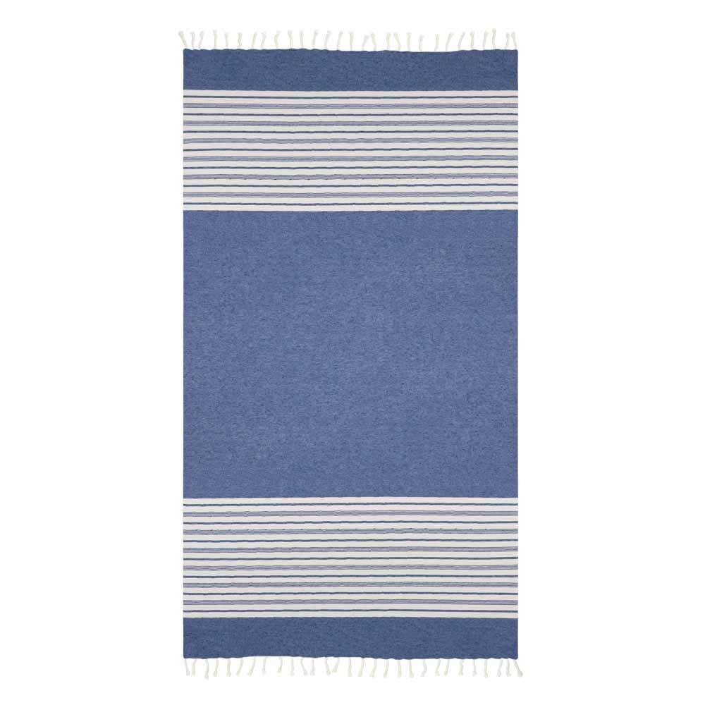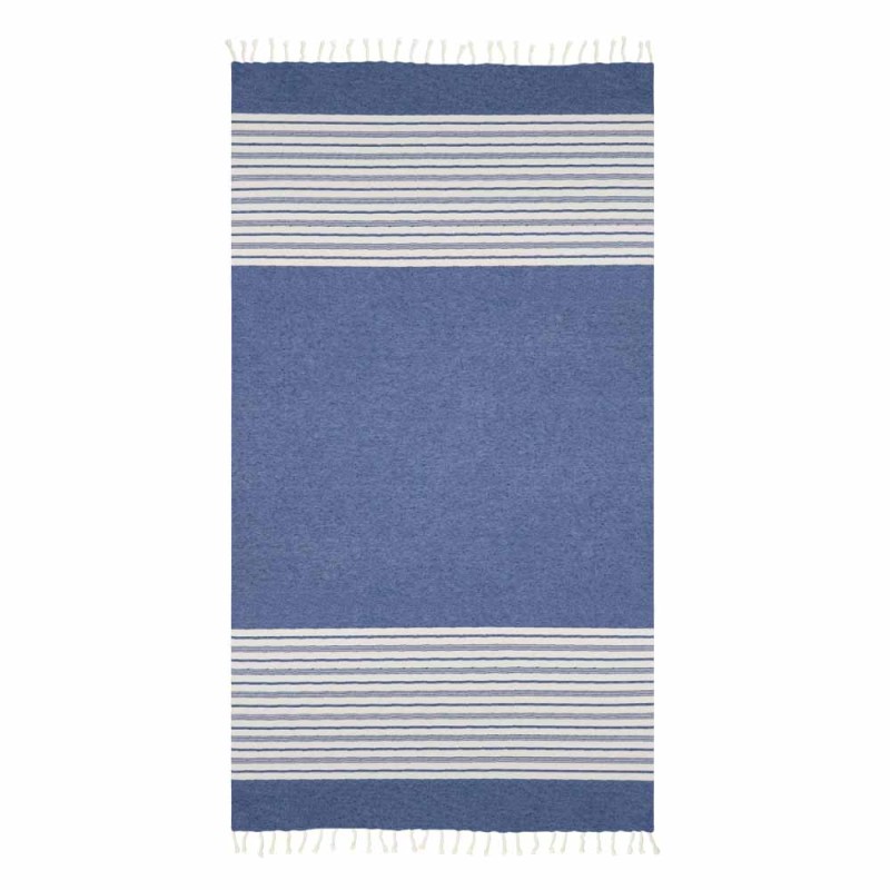Pestemal πετσέτα με ρίγες και κρόσσι στο τελείωμα από την Aquablue. Υπέροχη πρόταση για τις καλοκαιρινές σας εμφανίσεις. Είναι αρκετά απορροφητικές, ελαφριές και στεγνώνουν γρήγορα. Διατίθεται σε διάσταση 180x90cm και βάρος 350gr/m2.