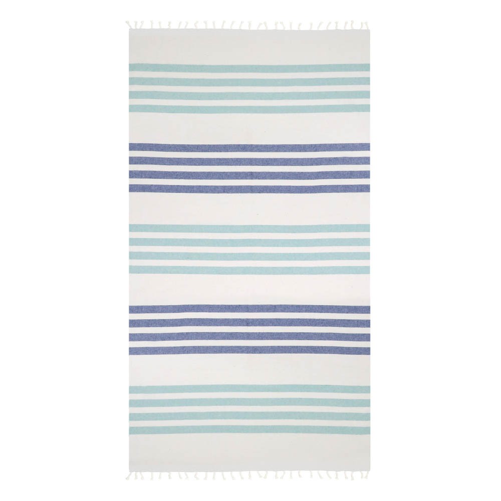 Pestemal πετσέτα με ρίγες και κρόσσι στο τελείωμα από την Aquablue. Υπέροχη πρόταση για τις καλοκαιρινές σας εμφανίσεις. Είναι αρκετά απορροφητικές, ελαφριές και στεγνώνουν γρήγορα. Διατίθεται σε διάσταση 180x90cm και βάρος 350gr/m2.