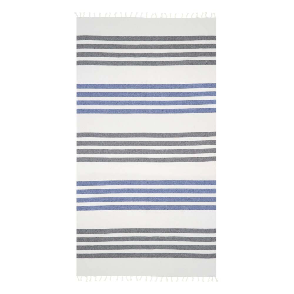 Pestemal πετσέτα με ρίγες και κρόσσι στο τελείωμα από την Aquablue. Υπέροχη πρόταση για τις καλοκαιρινές σας εμφανίσεις. Είναι αρκετά απορροφητικές, ελαφριές και στεγνώνουν γρήγορα. Διατίθεται σε διάσταση 180x90cm και βάρος 350gr/m2.
