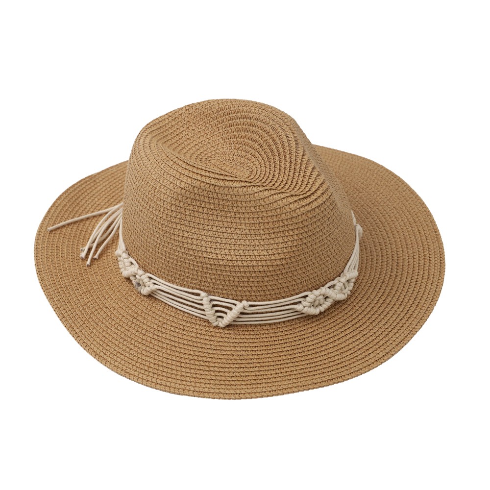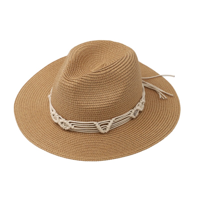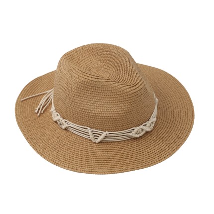 Ψάθινο Καπέλο Με Κορδόνι Μακραμέ Περιμετρικά