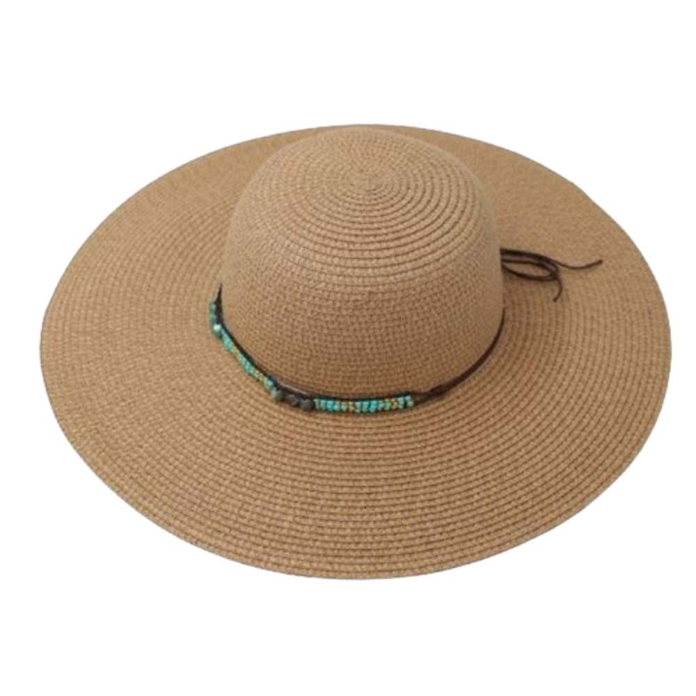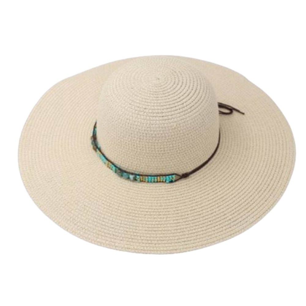 Ψάθινο Καπέλο Με Χάντρες Περιμετρικά και Κορδόνι