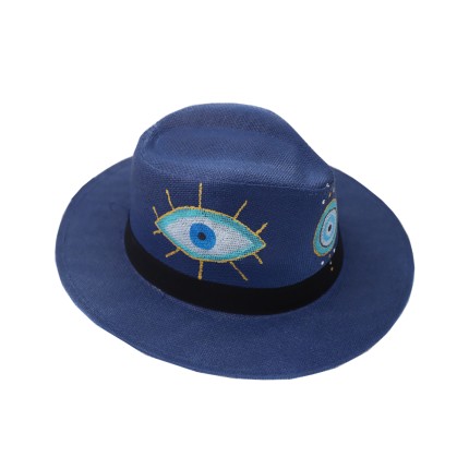 Ψάθινο καπέλο ζωγραφισμένα σχέδια στο χέρι. Unisex