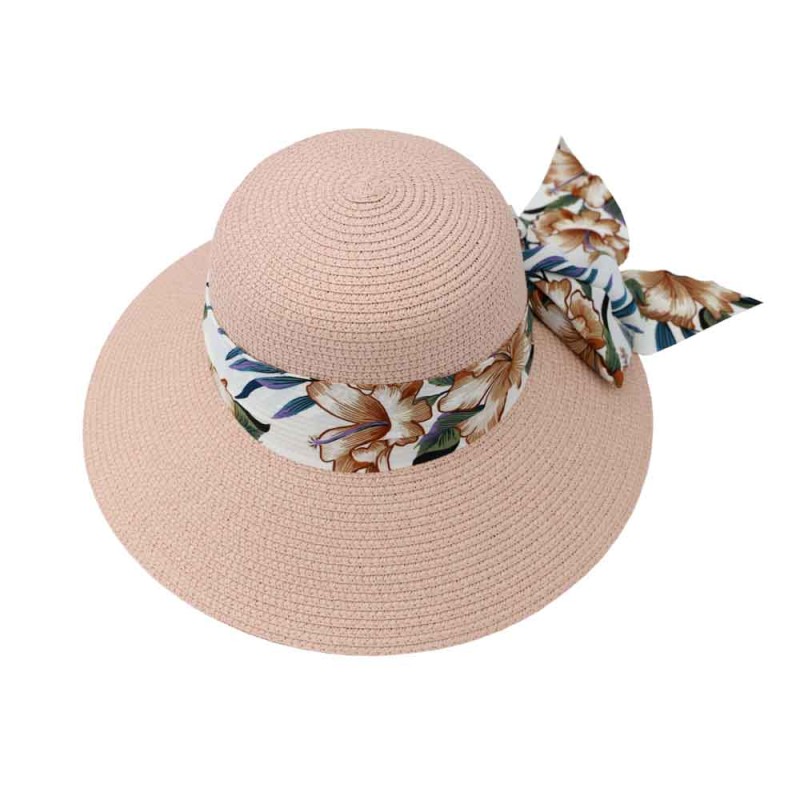 Γυναικείο Ψάθινο Καπέλο, Ρυθμιζόμενο Μέγεθος με Floral κορδέλα