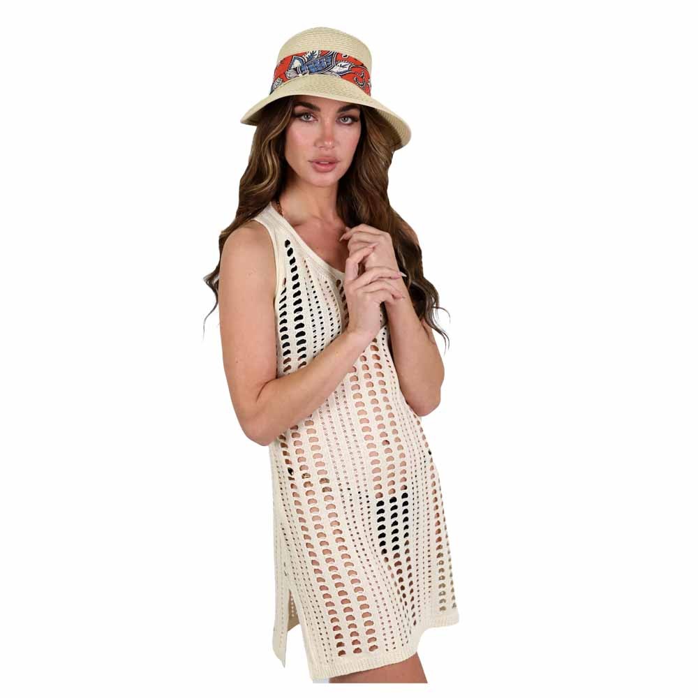Γυναικείο Ψάθινο Καπέλο, Ρυθμιζόμενο Μέγεθος με κορδέλα