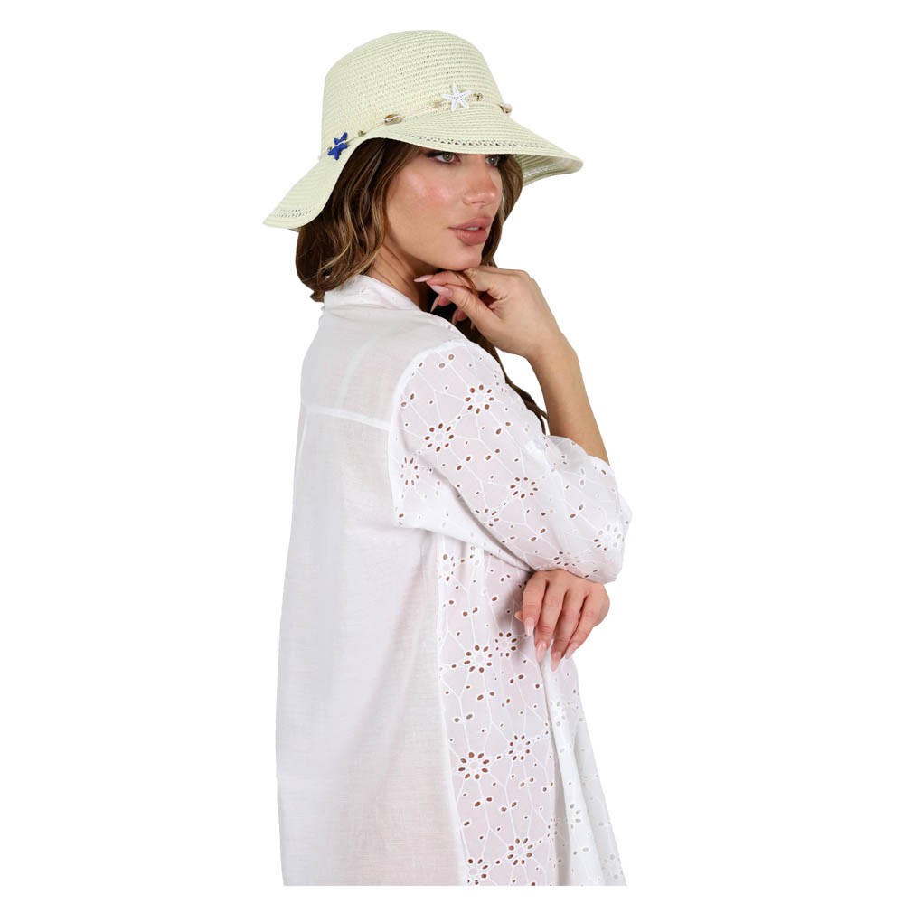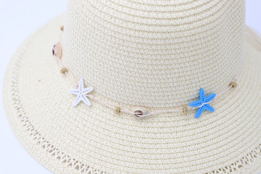 Γυναικείο ψάθινο καπέλο με ζώνη από κοχύλια από την Aquablue. Το καπέλο που θα ερωτευτείς! Ένα καπέλο που θα το φορέσεις και θα το συνδυάσεις εύκολα με όλα σου τα outfits και με το μαγιό σου.