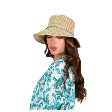 Γυναικείο ψάθινο καπέλο με ζώνη με χάντρες από την Aquablue. Το καπέλο που θα ερωτευτείς! Ένα καπέλο που θα το φορέσεις και θα το συνδυάσεις εύκολα με όλα σου τα outfits και με το μαγιό σου.