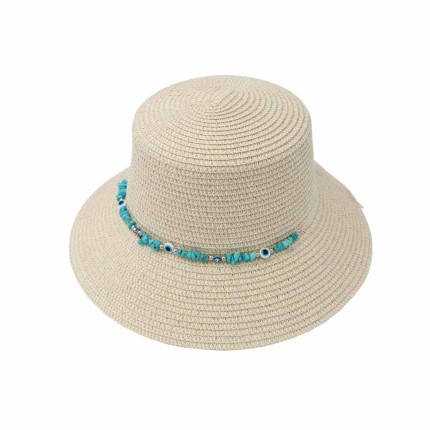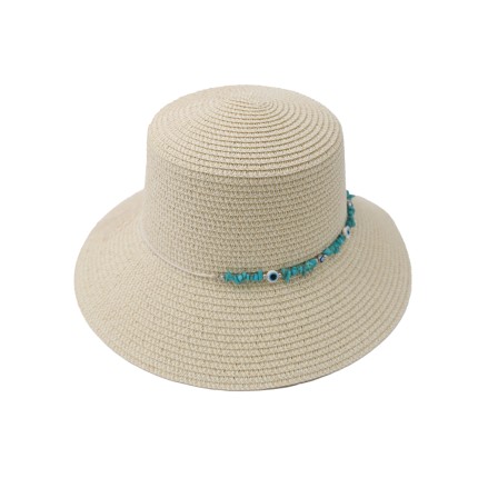 Γυναικείο Ψάθινο Καπέλο Με Χάντρες Μάτι