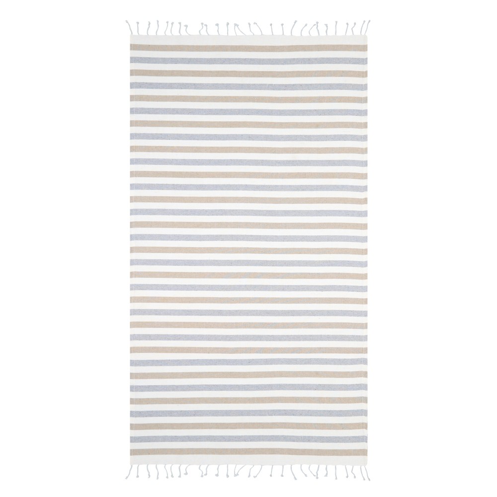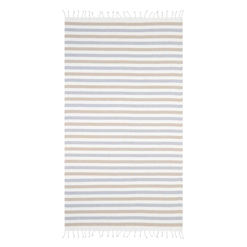Μοντέρνα Πετσέτα, σε ριγέ σχέδιο, Χρώμα Μπεζ Με Κρόσσια Στο Τελείωμα. Οι Διαστάσεις Του Είναι 90x180.