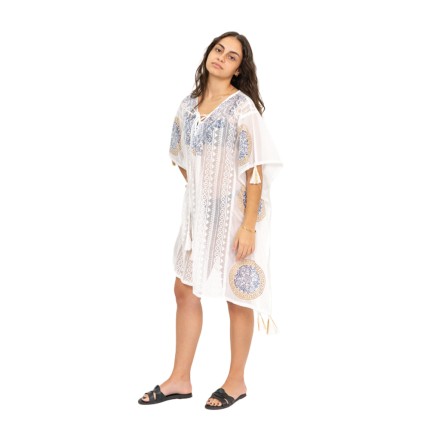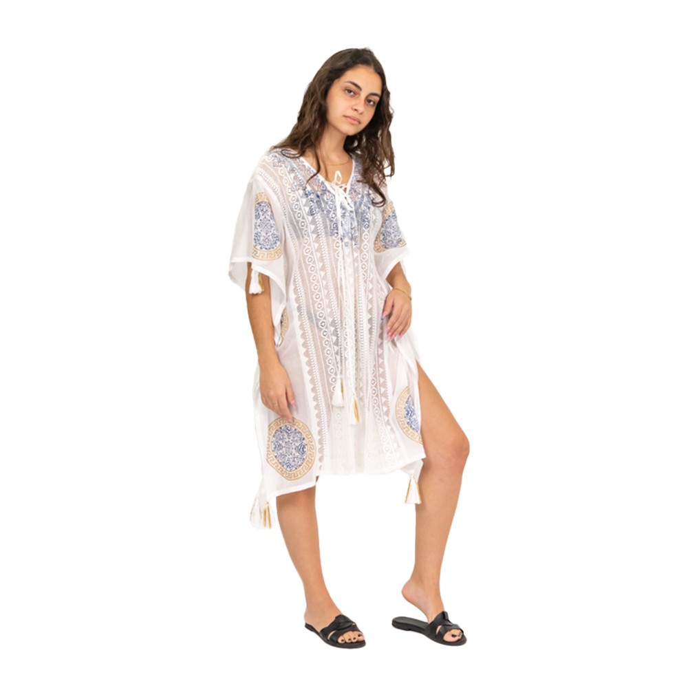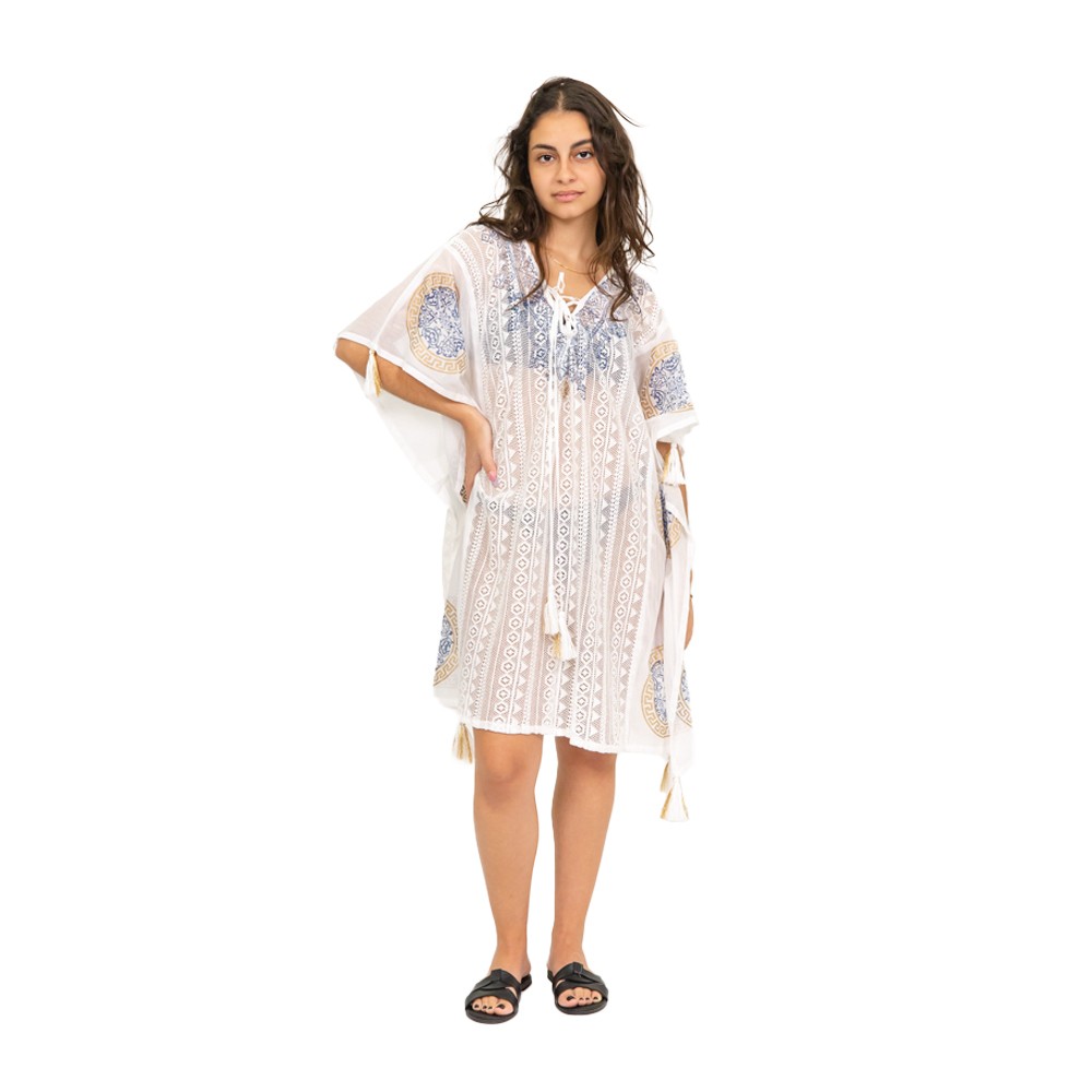 Καφτάνι mini με κεντημένες λεπτομέρειες και χρυσό τύπωμα - Το απόλυτο καλοκαιρινό ρούχο