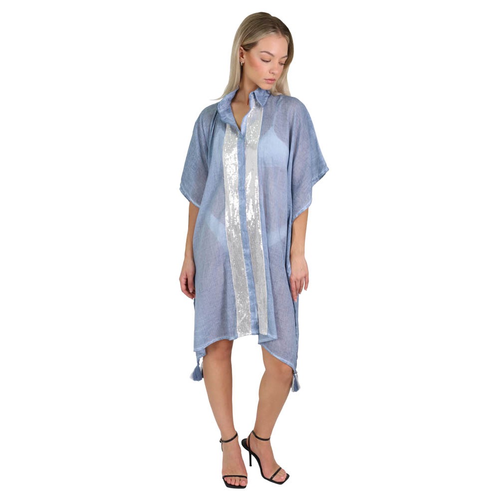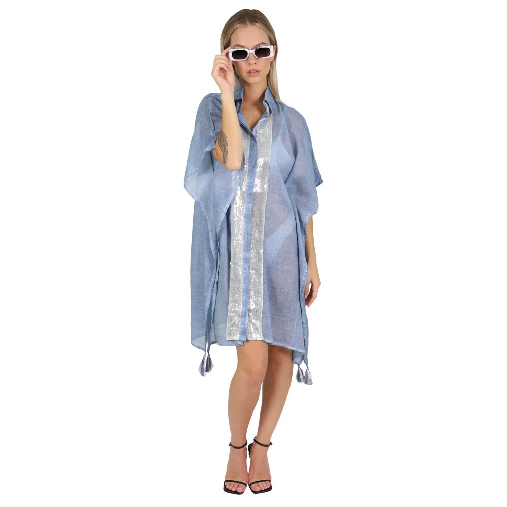 Καφτάνι-πουκαμίσα με κεντημένες λεπτομέρειες . Αέρινο και άνετο, ενώ παράλληλα στιλάτο και κομψό. Μπορεί να φορεθεί όλες τις ώρες της ημέρας. Συνδυάζεται εύκολα με όλα τα μαγιό ενώ παράλληλα εφαρμόζει όμορφα σε όλους τους τύπους σώματος.