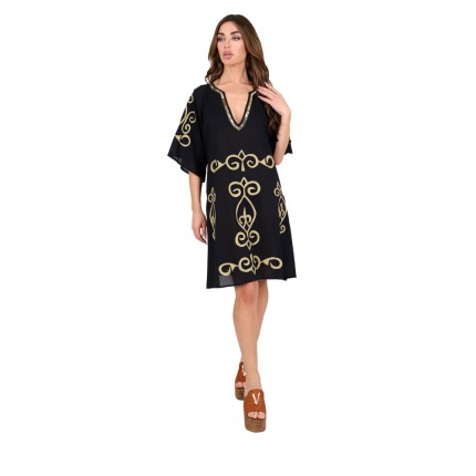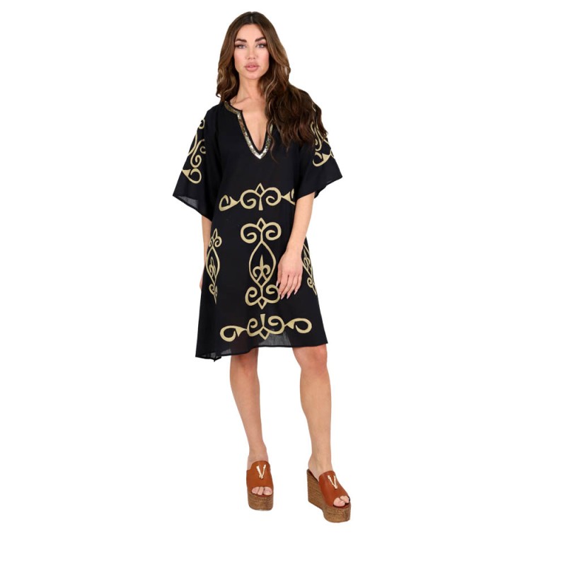Καφτάνι με παγιέτες και κεντημένες λεπτομέρειες στο γιακά σε διάφορα χρώματα, αέρινο και άνετο, ενώ παράλληλα στιλάτο και κομψό. Μπορεί να φορεθεί όλες τις ώρες της ημέρας. Συνδυάζεται εύκολα με όλα τα μαγιό ενώ παράλληλα εφαρμόζει όμορφα σε όλους τους τύπους σώματος.