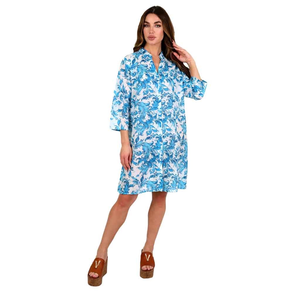Πουκαμίσα με μοτίβο, αέρινη και άνετη, ενώ παράλληλα στιλάτη και κομψή. Το must have dress του καλοκαιριού. Μπορεί να φορεθεί όλες τις ώρες της ημέρας.