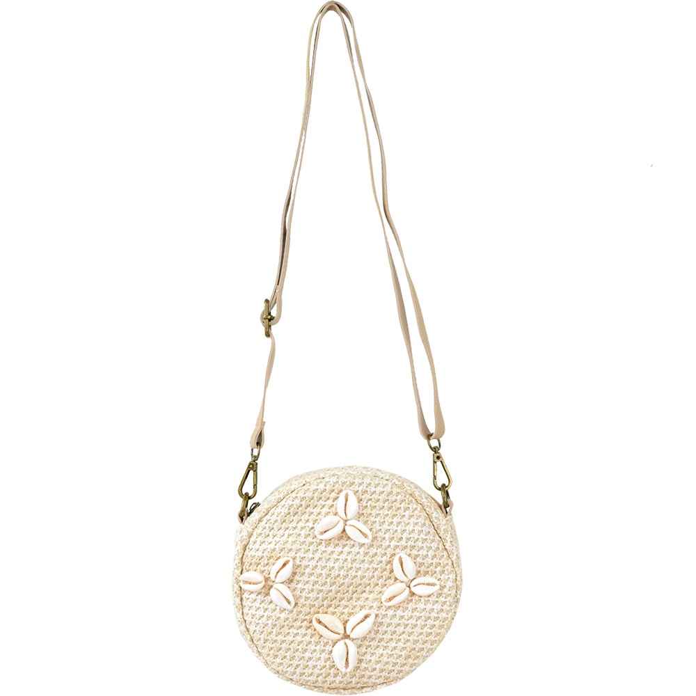 Τσαντάκι Ψάθινο Στρογγυλό με Κοχύλια