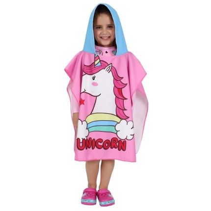 Παιδικό μπουρνούζι Μονόκερος και κουκούλα. Μια επιλογή κατάλληλη για θάλασσα, παραλία ή και για το μπάνιο. Είναι έξτρα απορροφητικό και στεγνώνει γρήγορα.