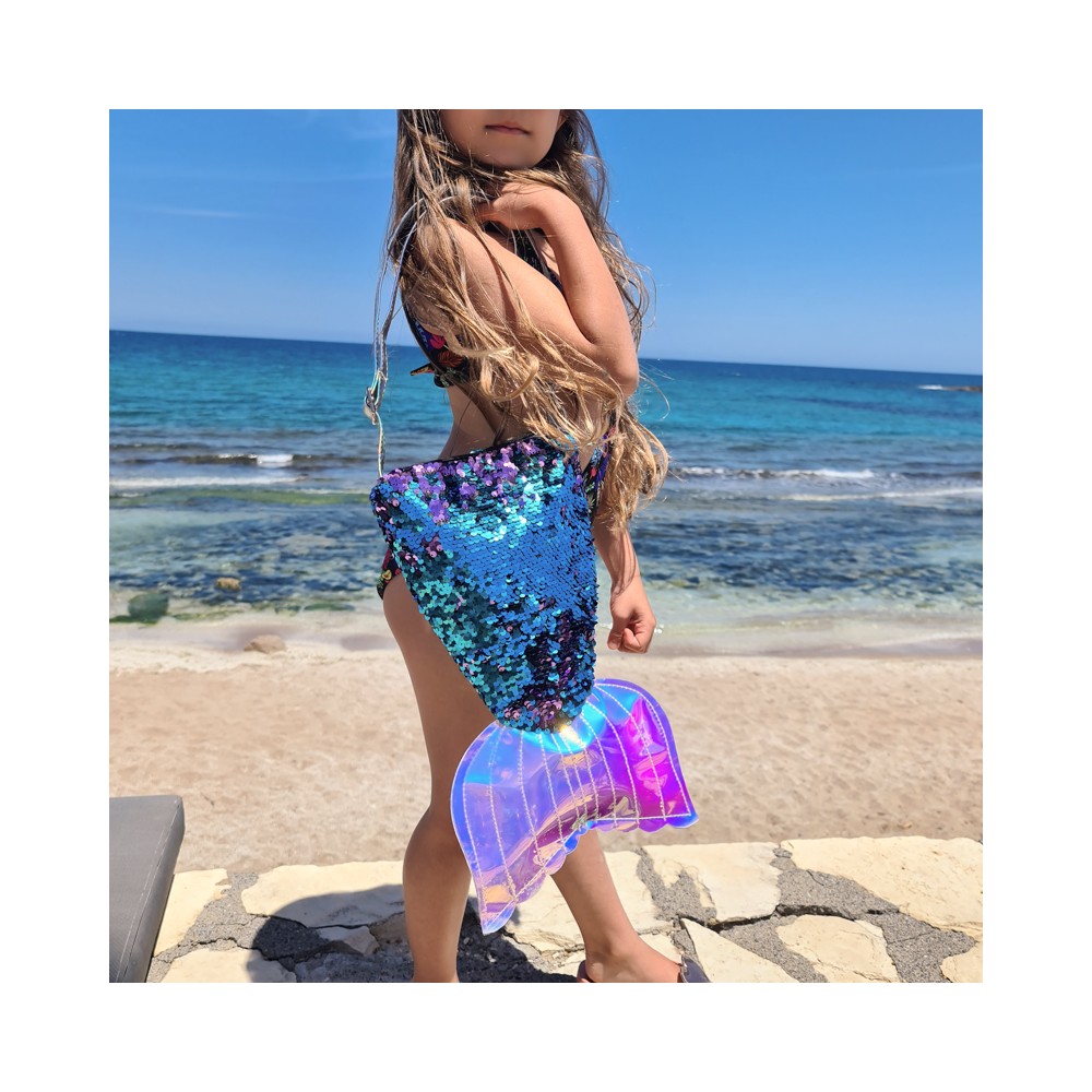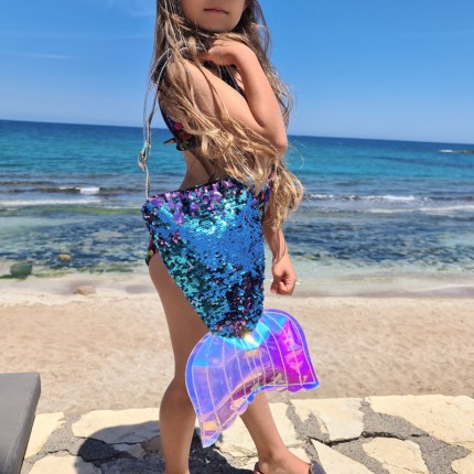 Τσαντάκι ώμου σε σχήμα ουρά γοργόνας με διάσταση 32x19cm.