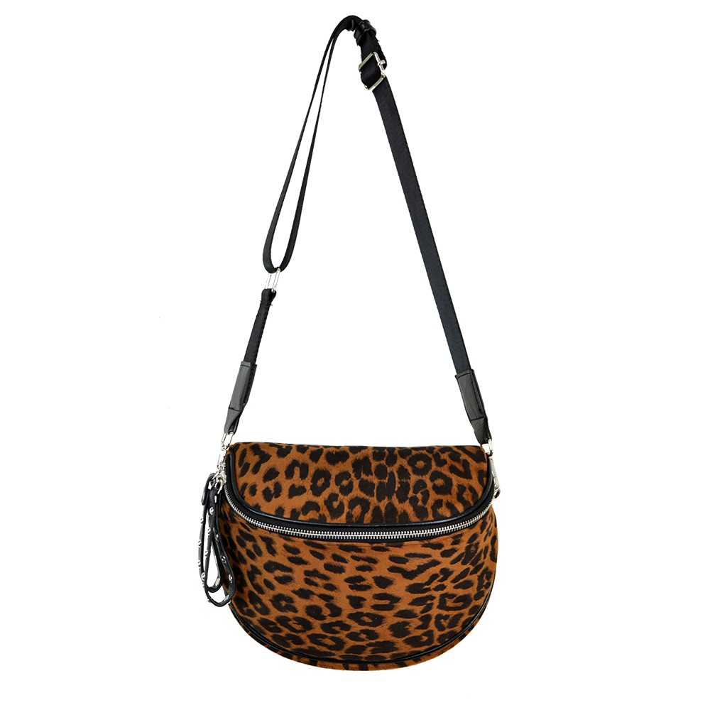 Animal print bag. A fashionable choice to match all your looks. Contains inner lining, an inner case and secures with zipper. It also has an adjustable strap so it can be worn crosswise or on shoulder or even on the waist.