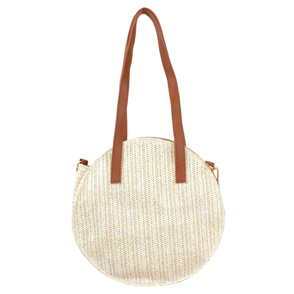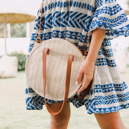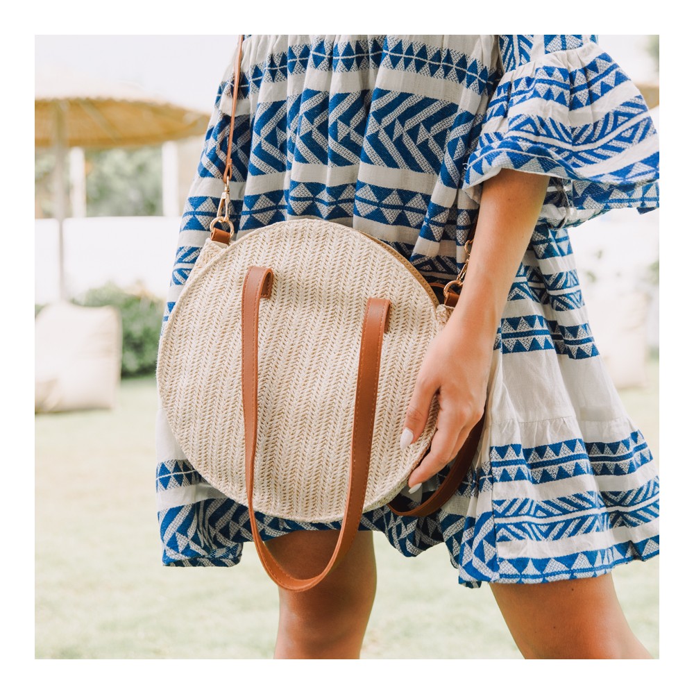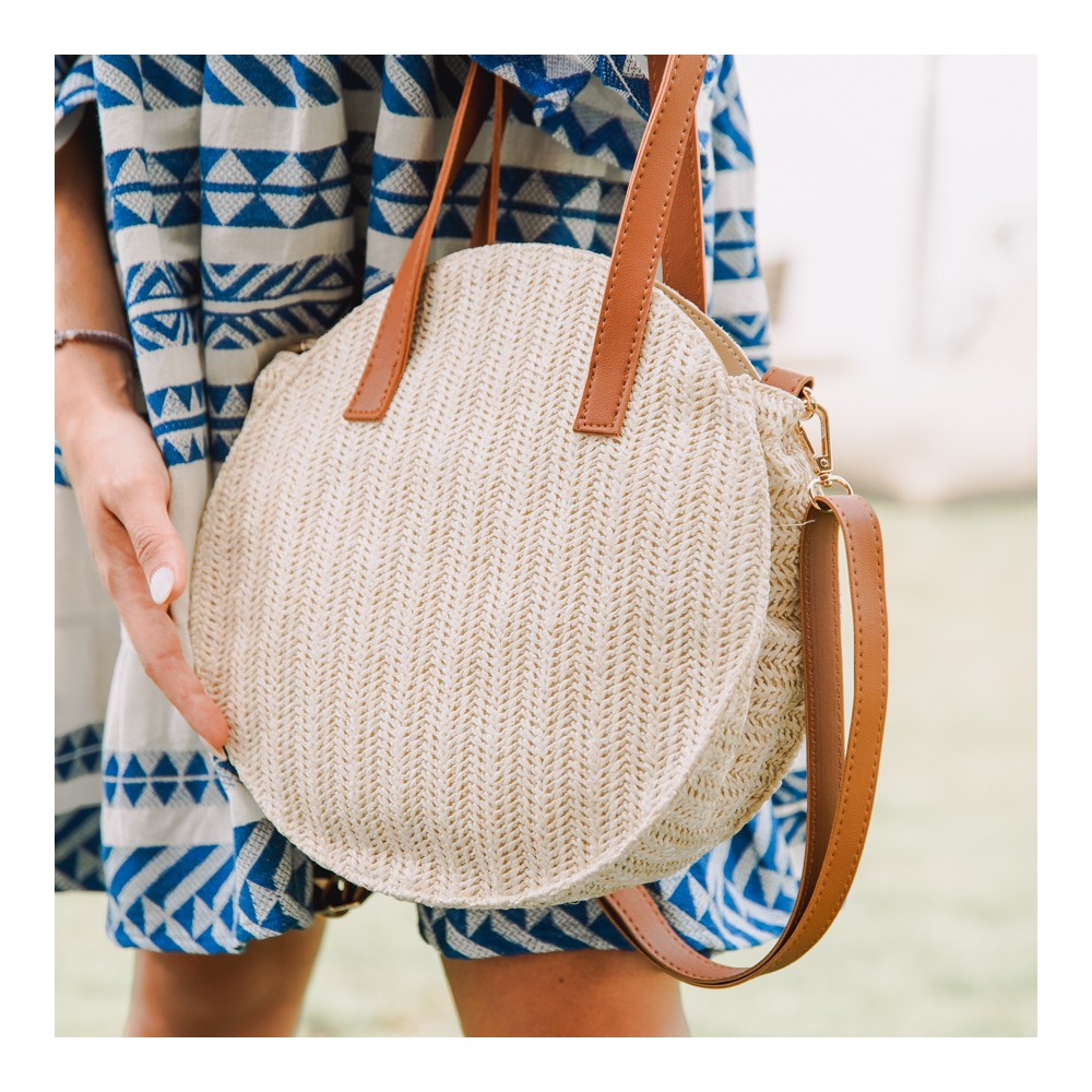 Round straw bag with two strap for perfect fit. Contains inner lining, 3 inner pockets and zippers. It even has two straps to use either on the shoulder or cross. A choice that will match with all your outfits.